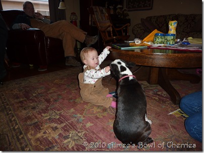 So then we got out her silverware (this, by the way, has been a battle- most have handles that are just too big for Piper to be comfortable with- either that, or the bowl part of the spoon is so big it doesn’t fit in her mouth- finally found that the really expensive and fancy Take-n-Toss toddler pack of forks and spoons is pretty darn good…) and let her play.